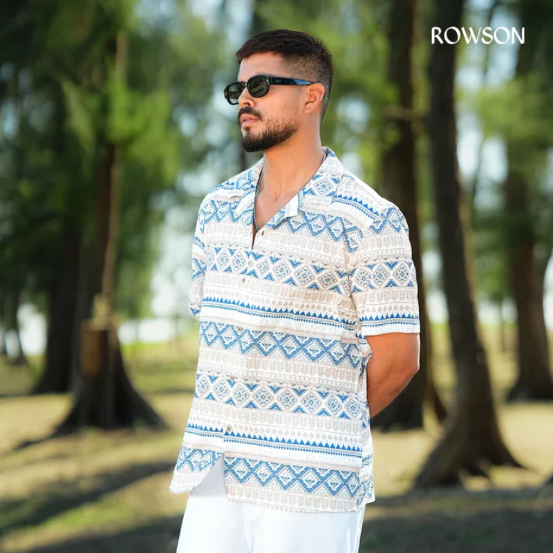 Elevate your everyday look with this premium semi-formal half shirt, crafted for the confident modern man who appreciates bold style with effortless comfort. Designed with a striking navy base and artistic abstract white pattern, this shirt creates a refined yet eye-catching statement. Perfect for summer outings, vacation moods, or smart-casual occasions.
